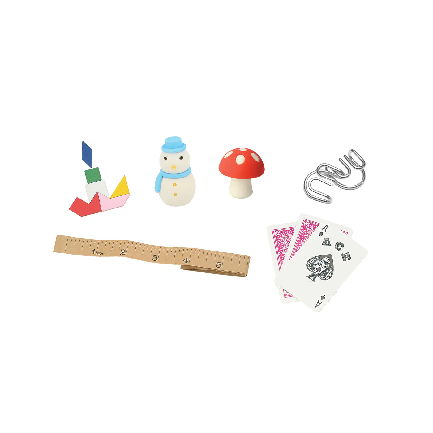 - The gifts include a mushroom eraser, bell eraser, wooden puzzle, tape measure, metal puzzle and magic trick - one gift per cracker