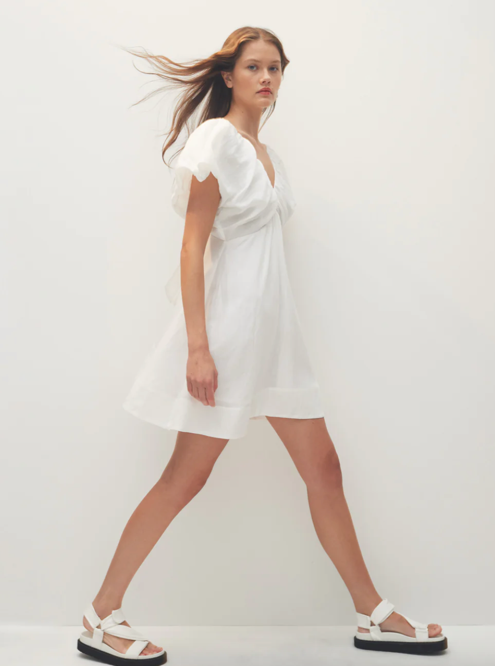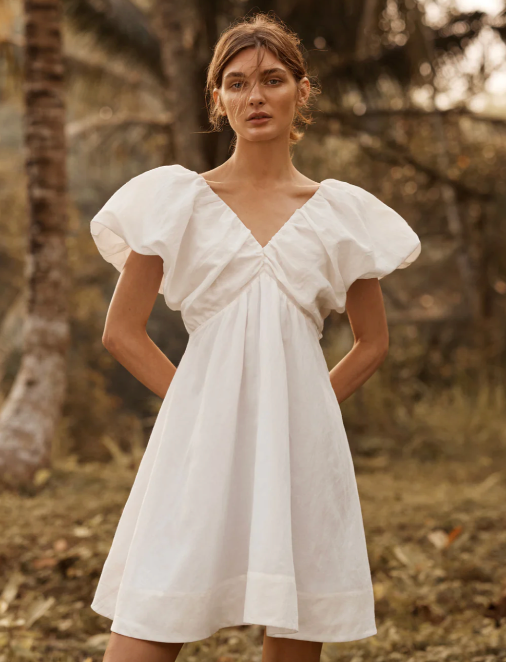 A spy a Christmas dress! Beautiful ivory ramie, finished with the sweetest bow detail on the back. Buy your normal size.