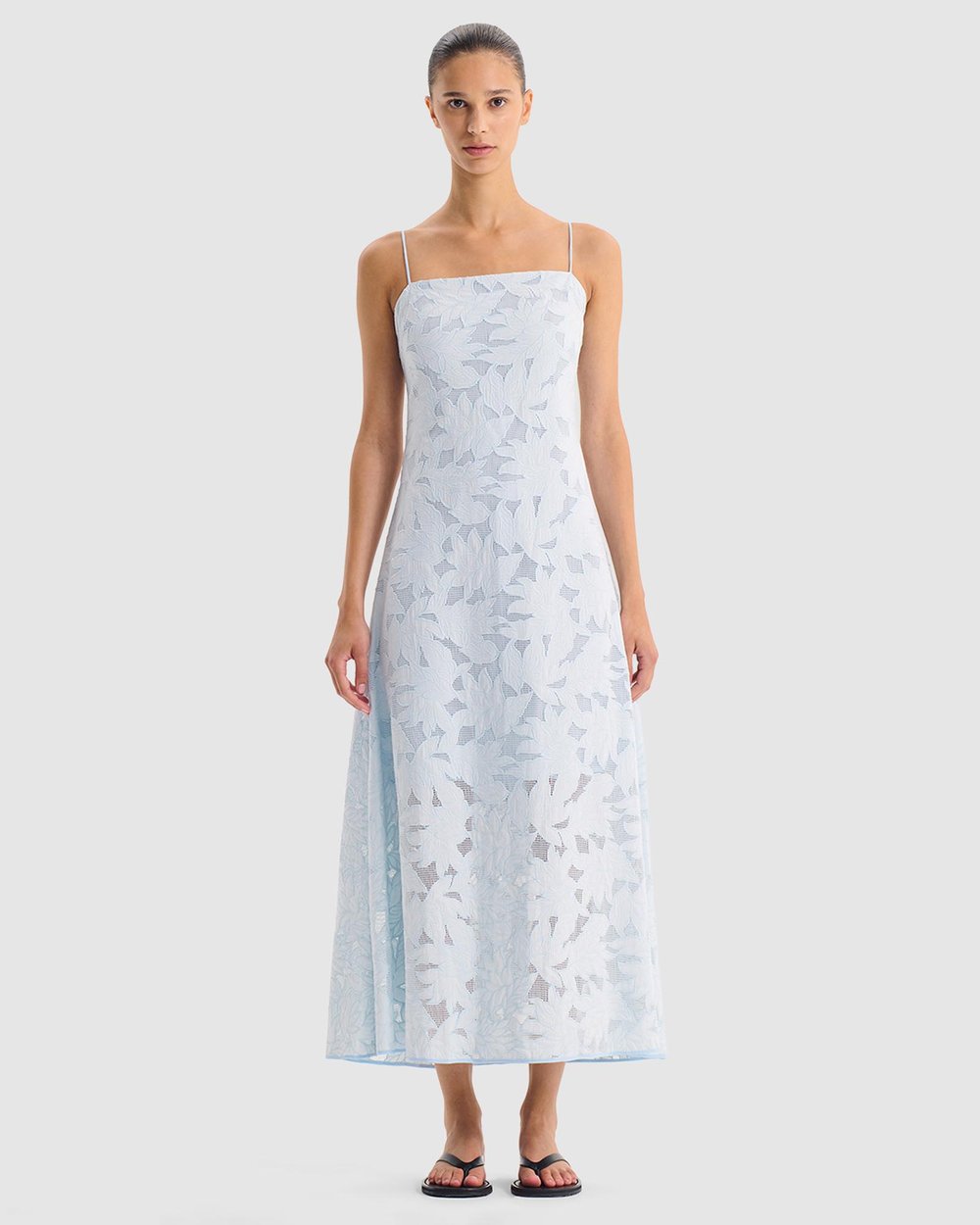 With its delicate anglaise detailing and relaxed yet refined silhouette, this dress is the perfect choice for embracing fresh, blossoming spring days in effortless elegance.