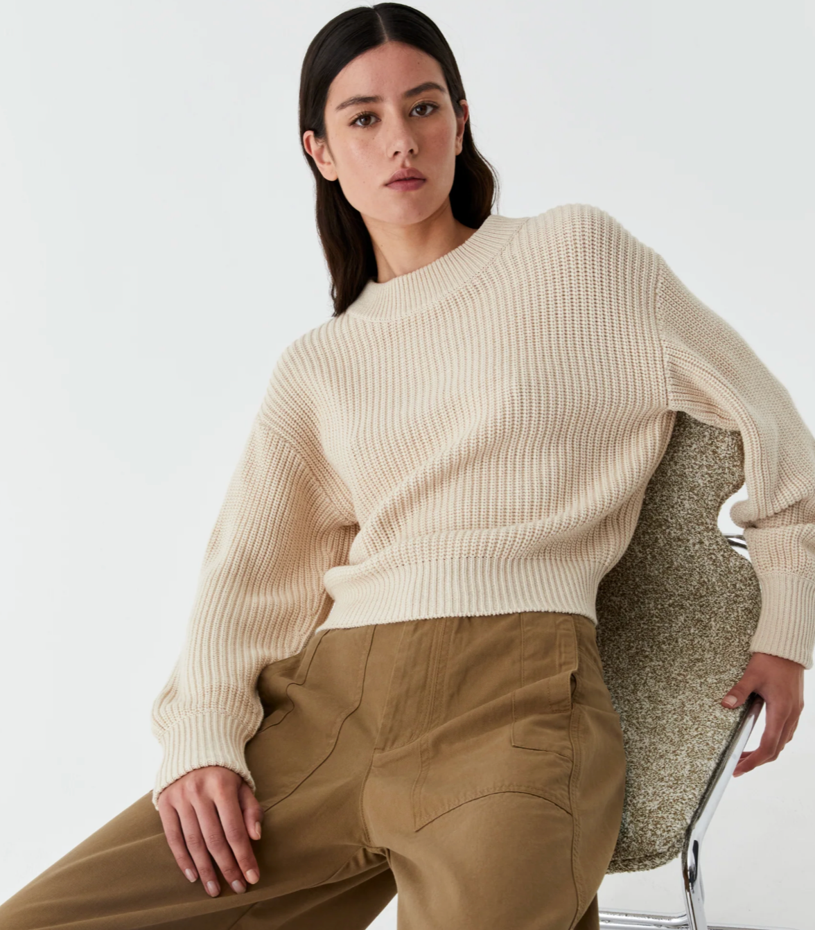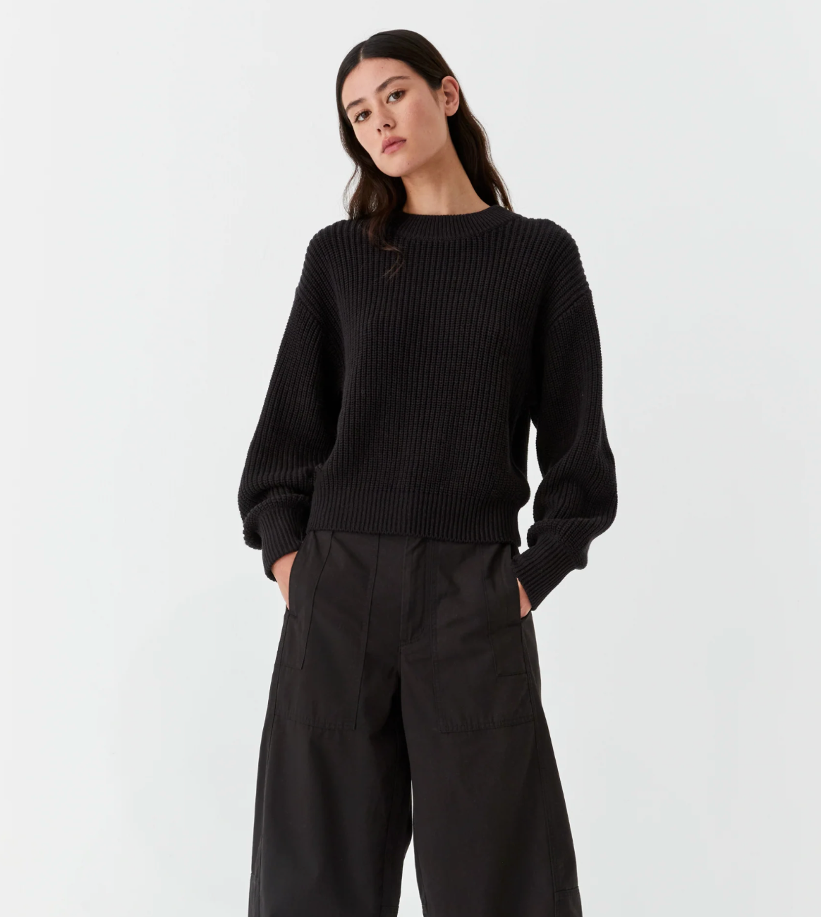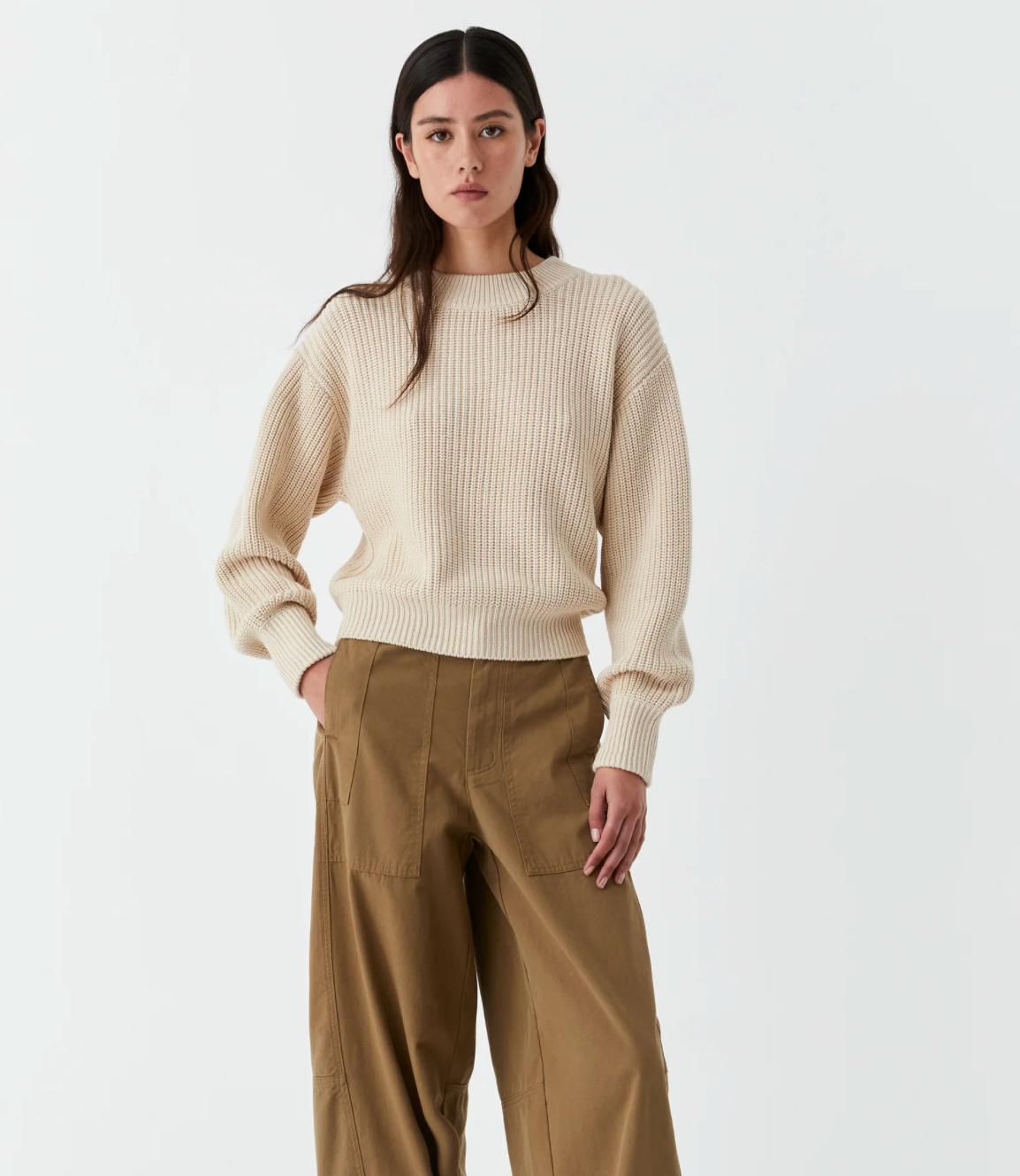 The Niko Knit Pullover is made from a soft cotton-blend yarn, offering both comfort and style. Featuring a chunky round neck, dropped shoulders, and full-length billow sleeves, this relaxed fit sweater is finished with fitted rib trim at the sleeves and hem for a flattering silhouette.