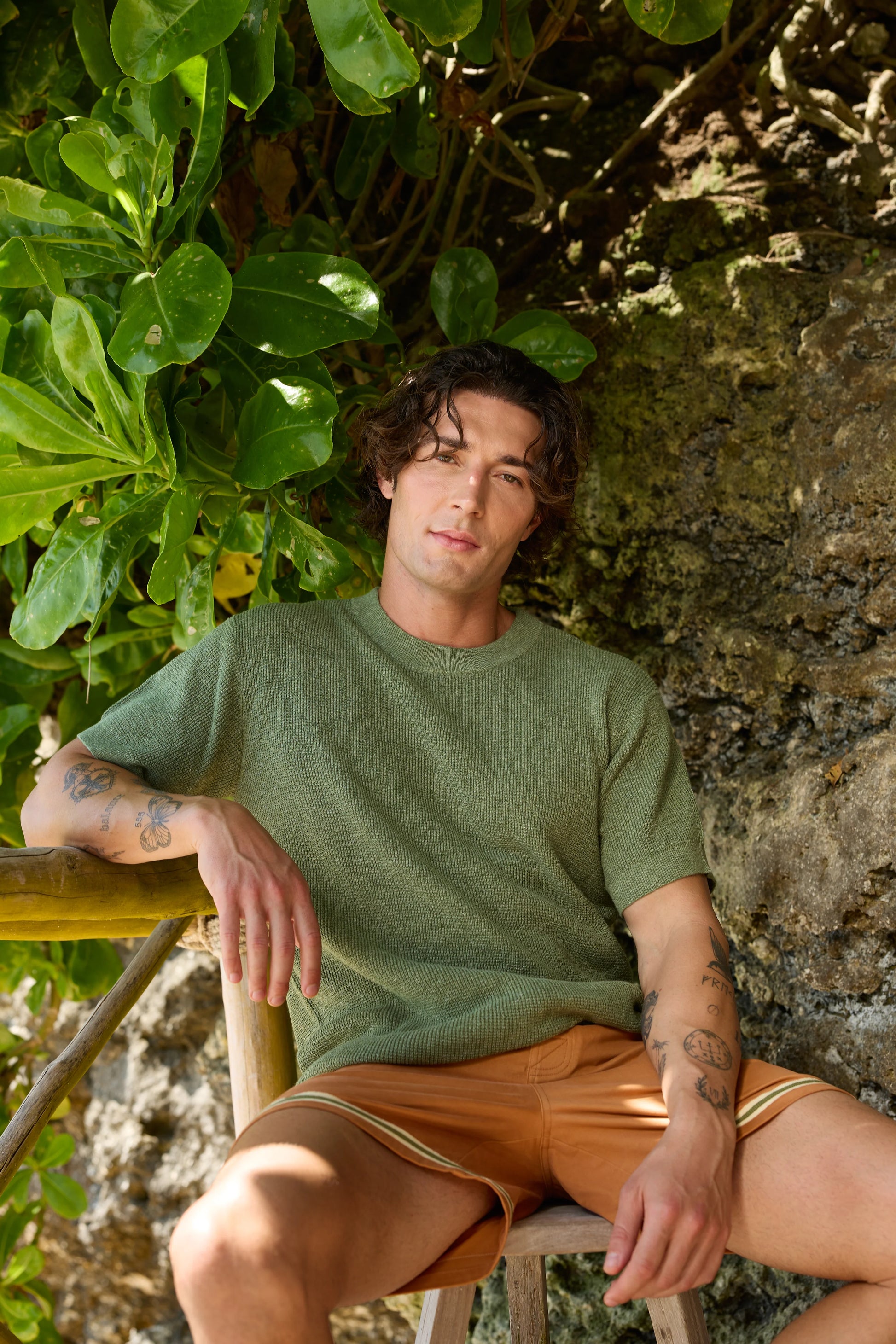 The Mr. Odet Tropicale Knit Tee in Pistachio is crafted in 70% cotton 30% linen knit. This design is intentionally oversized with a slight dropped shoulder and slouched fit. Ribbed neckline, sleeve cuffs and hem frame this style. Designed to be paired with the Tropicale Striped Boardshort.