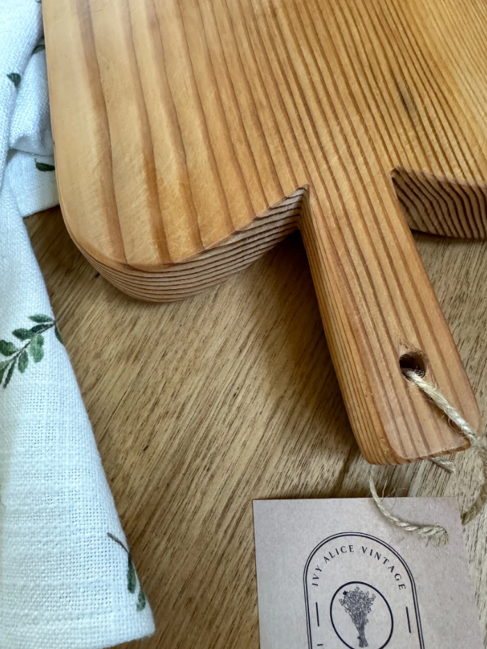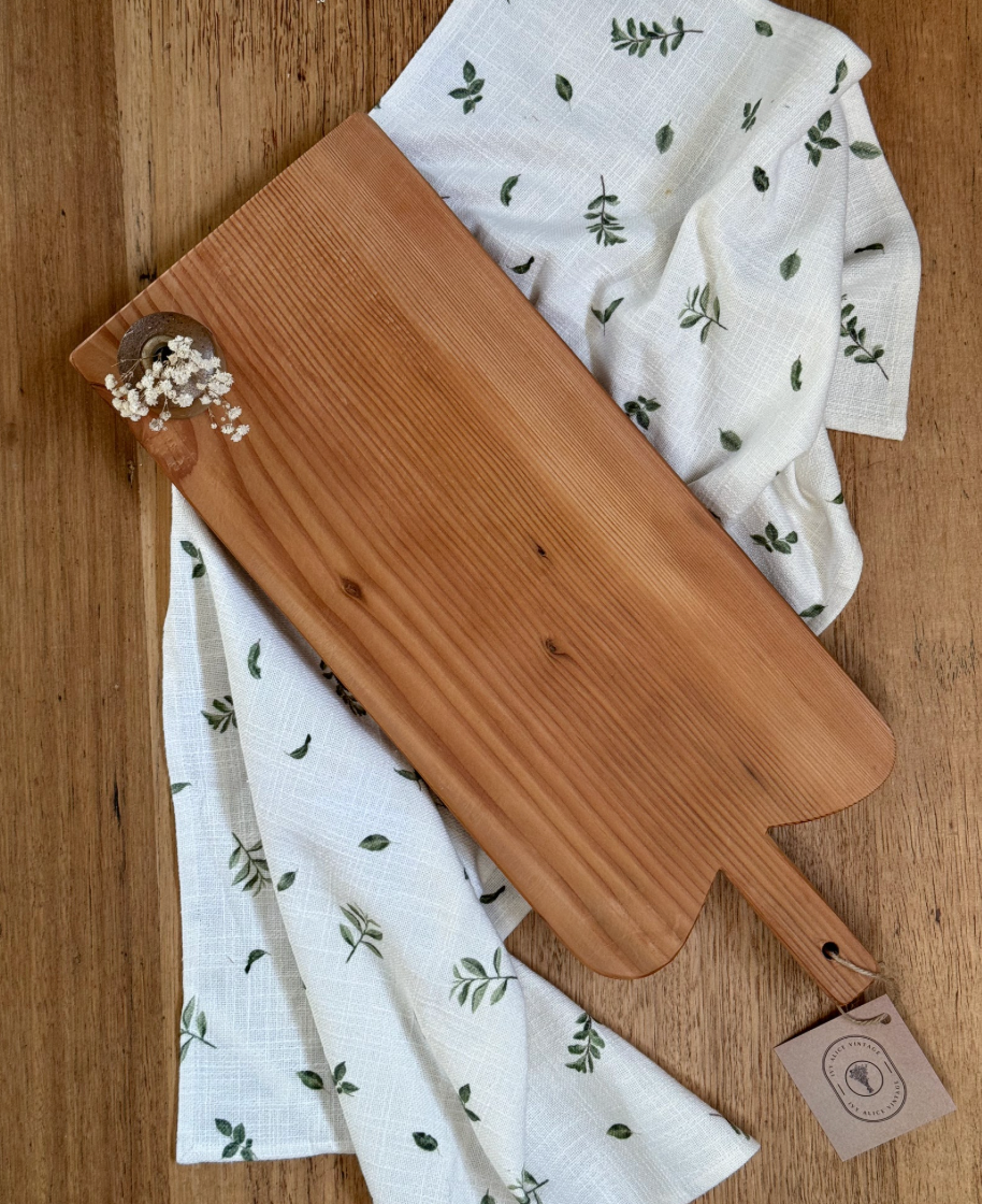 Handmade using locally sourced reclaimed Oregon (Douglas Fir) This board is a smaller version of the Large Curved Corners perfect for smaller spaces whilst still being a long board. Intended for use as a cheese board, charcuterie board, bread board, serve ware & decor. All serving boards are finished with Australian made food safe wax (Gillys, available at Bunnings nationwide)