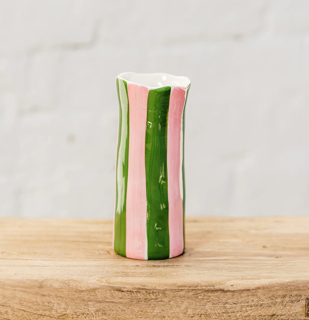 Divine classic striped vase for that pop of colour on a surface in your home.