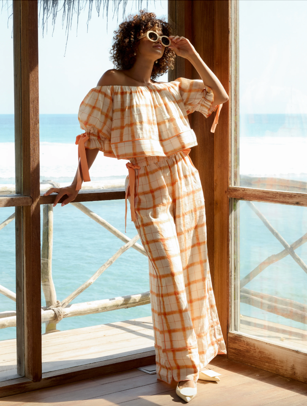 Designed to be paired with the Le Soleil Linen Pant in Mandarine Gingham.