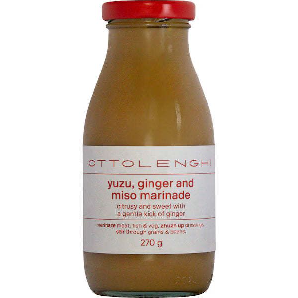 Elevate your culinary creations with Ottolenghi’s Yuzu, Ginger & Miso Marinade. This vibrant blend combines the citrusy brightness of yuzu, the warmth of ginger, and the umami depth of miso, creating a harmonious marinade that brings a unique twist to your dishes. Ideal for marinating meats, fish, and vegetables, it also adds a delightful zing to dressings and grains. Whether you're grilling, roasting, or stir-frying, this versatile marinade infuses your meals with bold, balanced flavours