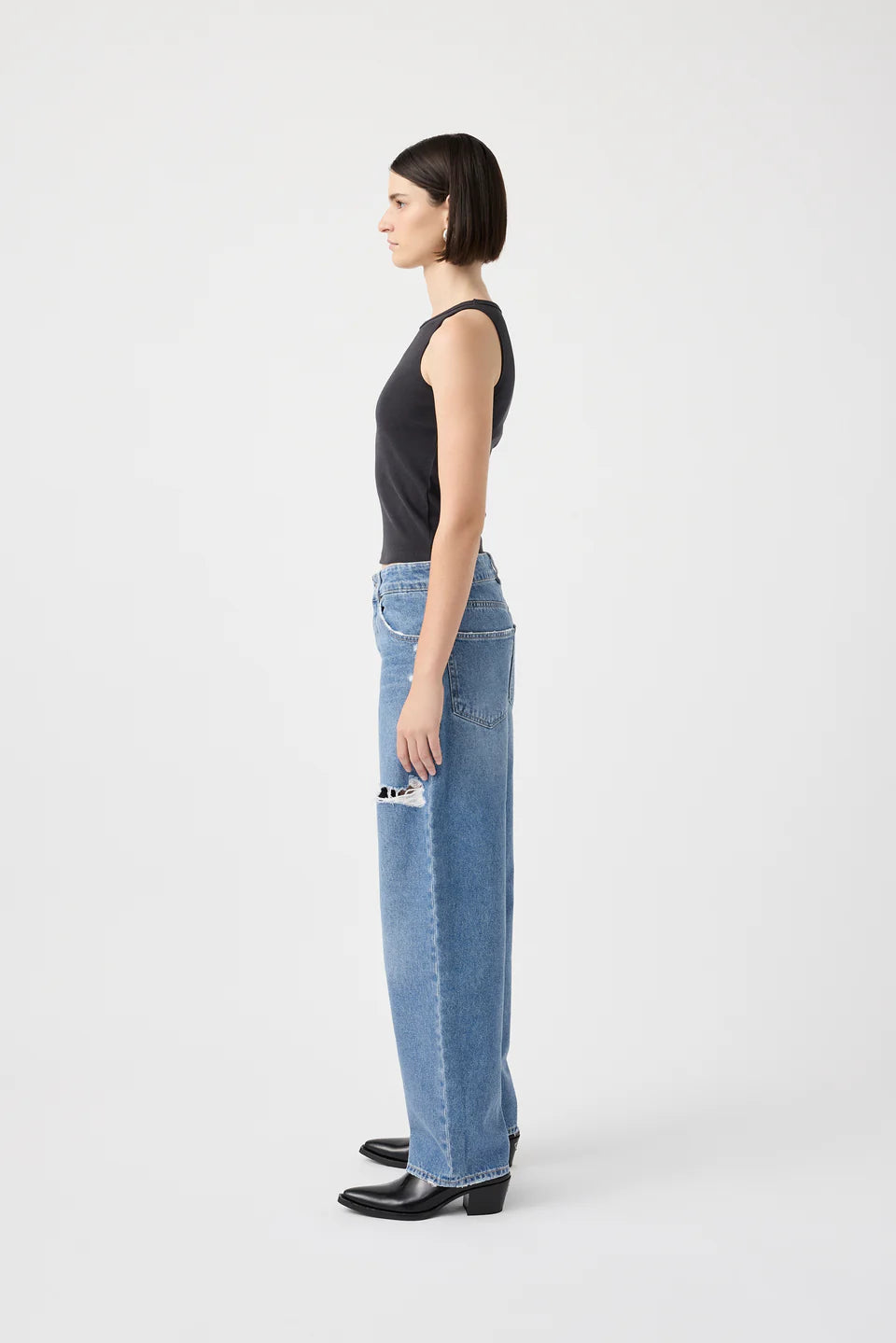 This medium-to-low rise with a slouchy wide-leg cut for that effortless, off-duty look.