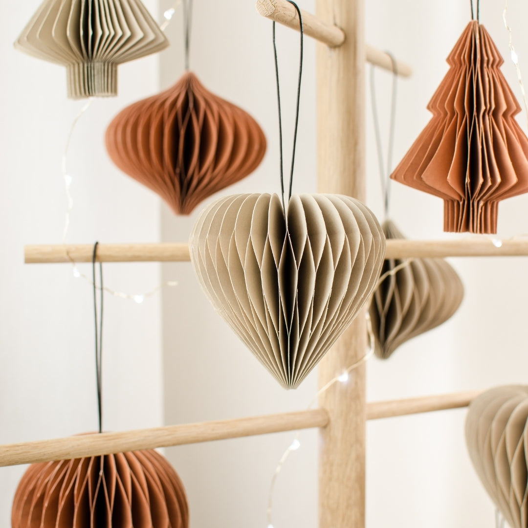 Each ornament is hand made from FSC certified paper and comes with a leather string.