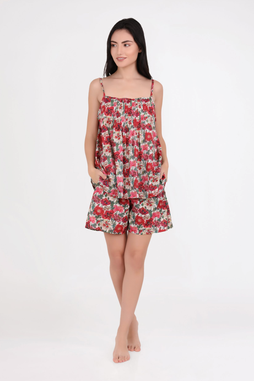 Beautifully crafted cotton pyjama set featuring a singlet top and pyjama bottom pants with drawstring was it. Crafted in the softest cotton foil.