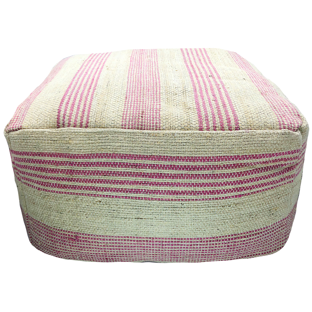 The Remy Ottoman comes handwoven in a wool & jute mix and is finished in watermelon pink and natural plait in a bold stripe pattern.