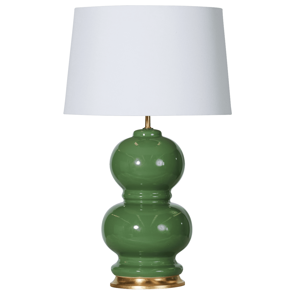 The Tahitian Lamp is a perfect balance between traditional and modern. The curved gourd-inspired shape adds a sculptural element to any room, while the gold base gives a glamorous twist. It comes in a beautiful Kelly Green hue and with a white cotton shade.