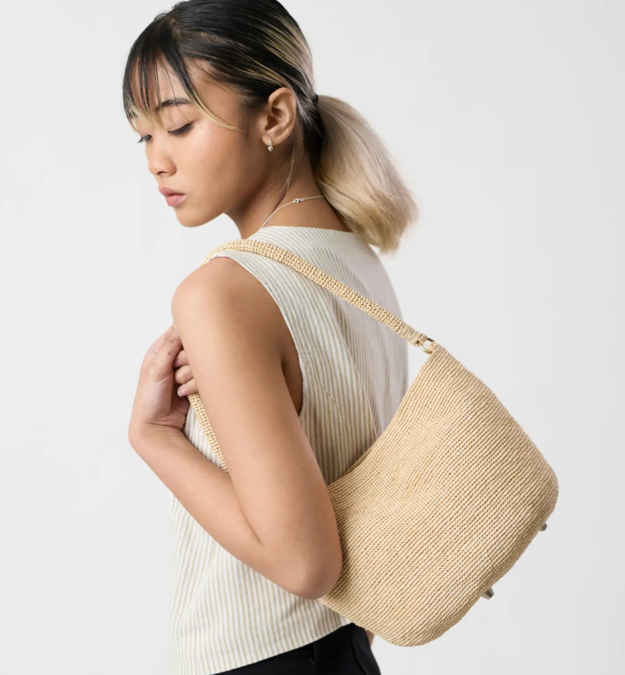 Named after the Malagasy word for “tummy”, KIBO is a beautifully rounded raffia handbag designed for both style and function.