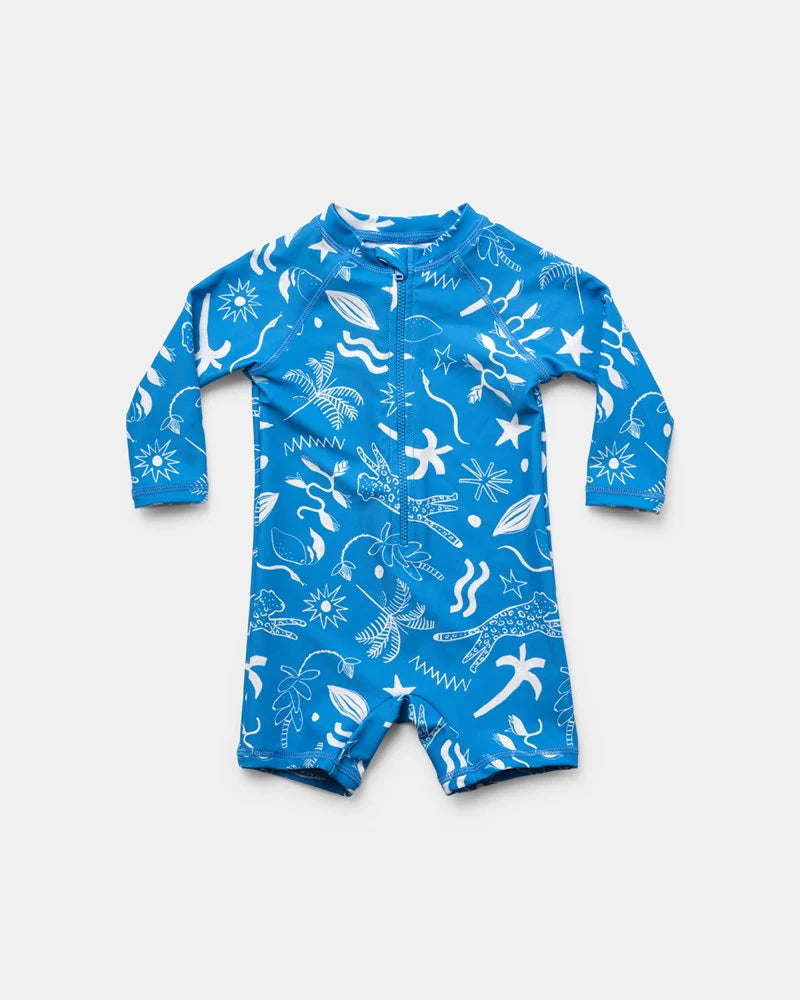 The Pippie Body Swimsuit is a perfect piece for long sunny days at the beach or pool, featuring a zipper front for the easiest of dressing, long sleeves and a short leg. With a UPF 50 Rating, these bathers shield the skin from UV rays all day long. Finished with the super fun Prime Dino print