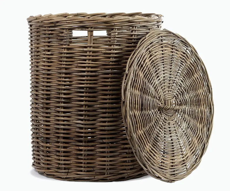Beautiful woven rattan basket. A great practical and stylish storage option. Comes with a lid