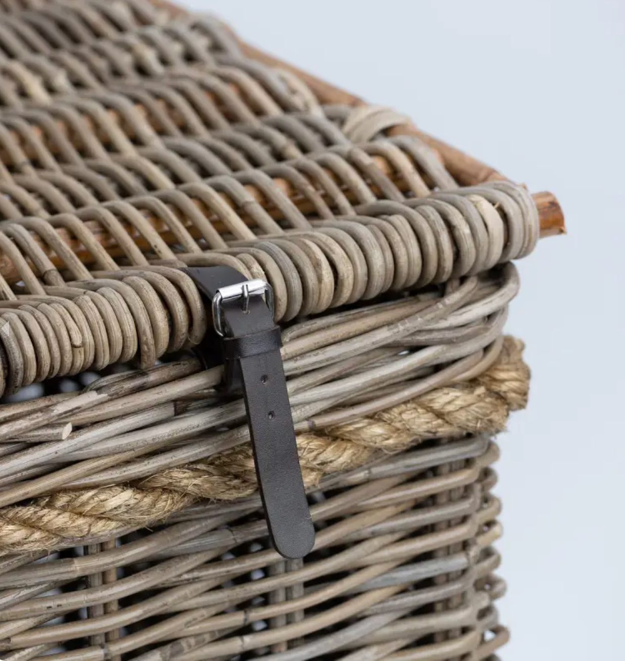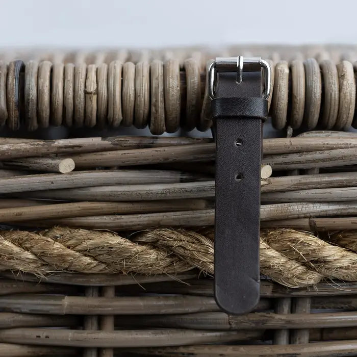 Keep a lid on it! A spacious basket with all the trimmings, the New England hamper has robust rope handles and smart leather buckled straps.
